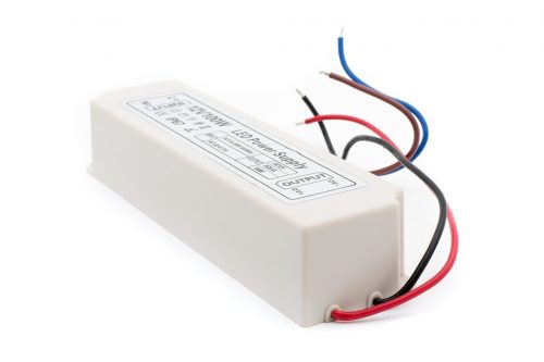 При применении большинства светодиодных лент и светодиодных модулей необходимы блоки питания, так как ленты и модули имеет напряжение 12В и 24В. Поэтому, для того, что бы запитать от сети 220В LED — освещение на 12В необходим трансформатор напряжения или, проще говоря, блок питания на 12В. Блок питания представляет собой коробочку прямоугольной формы небольших размеров, что позволяет его удобно монтировать и прятать при монтаже освещения.