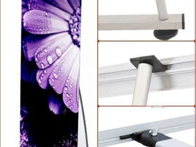 Первое, что бросается в глаза: L баннер невероятно мобилен и лёгок. Он состоит из разборного вертикального штатива и горизонтальной металлической ножки, к которой крепится нижняя часть полотна. Вертикальный стержень очень гибкий, благодаря тому, что сделан из углепластика. Это позволяет крепить полотно без особых навыков. Даже если вы ставите L баннер стенд впервые, вы справитесь с этим за пару-тройку минут.